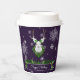 Sip your favourite Christmas time beverages with a festive set of Purple Reindeer Paper Cups. Paper cup design features a festive reindeer wearing a Christmas wreath adorned with holly berries and falling snowflakes and a holiday greeting box decorated with holiday garland. Additional gift and holiday items available with this design as well.