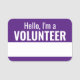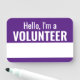 Reusable dry erase name tags for volunteers. Purple background with white text. For general use in both casual and business professional environments. Great for charity and other volunteering events. Customise the text for a more specific form of identification.