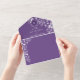 Celebrate your day with this elegant purple floral all-in-one wedding invitation, featuring romantic botanical line art, glowing string lights, and a refined modern layout. This eco-friendly design includes your wedding website, QR code for RSVP, and a unique detachable mini-timeline card guests can bring with them to the celebration.