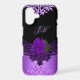 Purple Rose Floral Lace Black Monogrammed Classy Elegant Girly Case