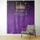 Design your own royal, elegant backdrops for creating photo keepsakes at your special occasion! Your arriving guests will receive a big "welcome" when they see it, and will have fun posing in front of it for pictures... Whether you are celebrating a purple and gold sweet 16 birthday party, fairy tale wedding, floral Mexican fiesta, a royal baby or bridal shower, these beautiful DIY template backdrop tapestries can certainly add some sparkle and glam. The rustic vintage theme on this simple template fabric prop is very popular for a purple masquerade party too... The floral design illustrated by the artist Raphaela Wilson showcases a pattern of lavender purple roses, a glamourous gold crown / tiara, and sparkle confetti butterflies. If you edit this royal design further, you will see options in silver as well, plus the ability to turn the svg graphics to ANY colour to match your party theme perfectly! This means you have the creative flexibility to turn the crown, confetti, and flowers to your custom colour of choice. Wow! Do you want different fonts for the calligraphy script and other modern text? You can change the typography style as well... Enjoy! Category: personalised hanging wall backdrops for parties / weddings with purple roses; custom purple wedding backdrops (large banner or sign); and purple black and gold backdrop tapestries. Purple wedding theme colours: dark purple, violet, lilac, lavender, white, black and gold (with options of faux metallic silver).