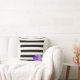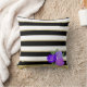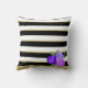 Purple Roses on Black, White, Gold Stripes Cushion
