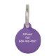 Purple background is featured on both sides of this round pet tag. Personalise pet's name on the front of the tag and add your phone number on the back of tag to help keep your dog or cat safe. Tag is available in different sizes, made in the USA!
