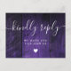 A purple rustic barn wood boho RSVP card with chic typography. The reverse features your details and a fun guest song request. Designed by Thisisnotme©