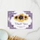 Purple Rustic Chic Lace Sunflower Wedding Thank You Card