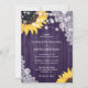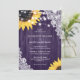 Purple Rustic Wood Floral Lace Sunflower Wedding Invitation