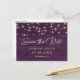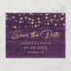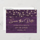 Purple Rustic Wood String Lights Save The Date Announcement Postcard