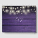 Purple Rustic Wood String Lights Script Wedding Guest Book
