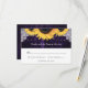 Rustic purple and sunflower wedding RSVP card featuring sunflowers, string lights and white floral lace on a wood background.