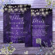 This purple rustic barn wood string lights wedding invitation can be personalised with your information in modern typography and wedding website QR code on the reverse. Designed by Thisisnotme©