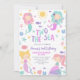 Colorful girl's two the sea birthday invitation featuring four cute mermaids, fish, star fish and more. This two the sea invitation is ideal for a mermaid under the sea 2nd birthday party.
