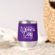 Celebrate IWD (International Women's Day) on March 8th with this purple stainless steel stemless wine tumbler, which features this special day in an elegant upright script. Reverse shows identical design.