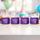 Celebrate IWD (International Women's Day) on March 8th with this purple stemless wine glass, which features this special day in an elegant upright script. Reverse shows identical design.