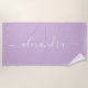 Stylish beach towel with an elegant, white girly script name on a light purple background. Personalise with your name.