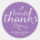 Vintage and rustic decorative script font wedding thank you sticker. Elegant and classic design purple and white wedding favour sticker. Classic wedding favour, bridal shower gift label, birthday party, engagement dinner, baby shower and much more. The background colour can be changed to your desired theme.