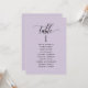 Help your guests find their table with this elegant purple modern seating plan card with guests' names. Double-sided cards so guests can look from both, front and back for their names. Clear space all around giving you the liberty to use clips or punch holes for hanging displays, or use a table holder/frame. Purple background and black text. Modern handwritten calligraphy details. Several colour options. Have all table numbers in the same colour or mix colours according to your event's colour theme. Part of our "Mauve and Purple Event Signs and Products" collection with a variety of coordinating products available, including table number cards and menus. Visit the collection by category on this product page or browse the entire collection in one glance at: https://www.zazzle.com/collections/joyful_pastel_floral_collection-119953493901910528