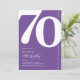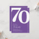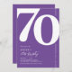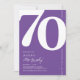 Introducing a trendy purple and white 70th birthday party invitation that seamlessly blends the old-world charm of the bold serif font number '70' with a modern, user-friendly personalizable template. This invitation isn't just a card, it's a meaningful keepsake to cherish the milestone of turning 70.