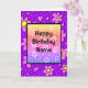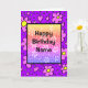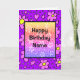 Illustration of daisy type flowers in shades of purple with hearts and dots. Easily personalise this card by editing the template text. On the front message reads 'Happy Birthday Name' and inside reads 'Enjoy Your Special Day'. Thanks for viewing my designs!