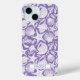 Customize this purple shell pattern iPhone 15 case with your your name in a trendy modern CAP font in purple on white. It's so modern and beachy!