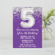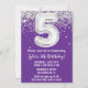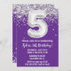 Purple Silver 5th Birthday Party Invitation