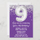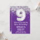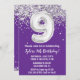 Purple Silver 9th Birthday Party Invitation