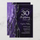 Purple and silver agate 30th birthday party invitation. Elegant modern design featuring watercolor agate marble geode background, faux glitter silver and typography script font. Trendy invite card perfect for a stylish women's bday celebration. Printed Zazzle invitations or instant download digital printable template.