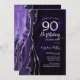 Purple and silver agate 90th birthday party invitation. Elegant modern design featuring watercolor agate marble geode background, faux glitter silver and typography script font. Trendy invite card perfect for a stylish women's bday celebration. Printed Zazzle invitations or instant download digital printable template.