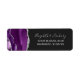 The left-hand edge of this elegant modern wedding invitation return address label features a purple watercolor agate border trimmed with faux silver glitter. The customisable text combines silver grey handwriting and copperplate fonts on an off-black background.