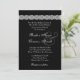 This contemporary design with lace accents on a black background and a beautiful unfolding rose makes an elegant wedding invitation, and is currently featured on a gold metallic paper which gives your invitation a warm shimmer and shine.You can experiment with different paper types to get just the look you want. If you want a glossy finish (which is only applied to the front side of your invitation) choose the linen, basic or metallic papers. If you want a matte finish, choose the specked, felt, or recycled. This invitation comes with an A7 sized envelope.
