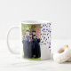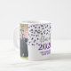 Customisable photo template class of 2020 graduation mug with silver and purple confetti pattern.