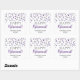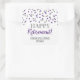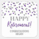 Happy retirement favour tag sticker with purple and silver confetti pattern.