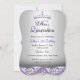 Purple & Silver Quinceañera Birthday Invitation. Pretty silver & purple diamond tiara & shimmer silver damask design. Please note: All flat images, They do not have real jewels!