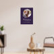 Elegant purple and silver floral photo memorial/funeral welcome sign featuring a photo adorned with watercolor purple roses and baby's breath flowers on a dark purple background.