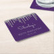 Purple Silver Glitter Drip 90th Birthday Party Square Paper Coaster