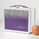 Purple and Silver Sparkle Glitter Brushed Metal Monogram Name Lunch Box. This makes the perfect sweet 16 birthday or going back to school gift for someone that loves glam luxury and chic styles.