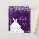 A feminine and elegant birthday thank you card. A purple, uneven coloured background colour. With faux silver glitter, sparkles and a white drerss. On front a large hand lettered script and the text: Thank You.