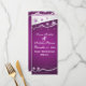 Purple, silver grey, white snowflake winter wedding menu card, featuring a waved band in silver grey with stars and purple elegant snowflakes on glowing gradient eggplant purple background. Modern and contemporary yet suitable for a traditional wedding. This elegant, classy and stylish design can be used for other special occasions such as engagements or anniversaries.. A perfect choice for winter, December or Christmas weddings.