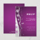 Purple, silver grey, white snowflake winter wedding RSVP response/reply card, featuring a waved band in silver grey with stars and purple elegant snowflakes on glowing gradient eggplant purple background. Modern and contemporary yet suitable for a traditional wedding. This elegant, classy and stylish design can be used for other special occasions such as engagements or anniversaries.. A perfect choice for winter, December or Christmas weddings.
