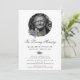 Elegant purple and silver floral memorial service/celebration of life/funeral invitation featuring a photo adorned with purple roses. A silver marble background at the back.