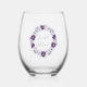 Purple & Silver Watercolor Floral Wreath Stemless Wine Glass
