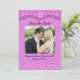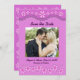 Purple Six Petal Pink Flowers Save the Date Card. The Front has valance with lace. Personalise this template with your information. Edit it for more changes. Change this for any occasion, anniversary, Valentine's Day, etc.