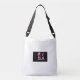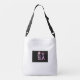 Unique Purple Skull & Bones on Black Background on a White Crossbody Bag with Black Sturdy Handle