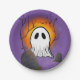 Purple Sky Orange Moon Ghost in graveyard Paper Plate