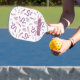 This cute pickleball paddles feature your name/text on a white background with snake and mushroom patterns. Personalise it for your needs. You can find matching products at my store.