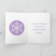 The front has a white snowflake on a light purple background with "Merry Christmas" from the family around it. The inside has a repeat of the snowflake and a message in matching purple.