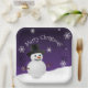 Brighten your holiday party supplies with this Purple Snowman Winter Scenery Paper Plates, perfect for your Christmas party supply needs. These charming plates feature a winter scene with a snowman and top hat, accented by white snowflakes and falling snow. The holiday typography displaying "Merry Christmas" adds a joyful touch to the Christmas snowman design. Sturdy and festive, these plates are ideal for serving treats at your holiday gatherings. Elevate your celebrations with these delightful, seasonal essentials.