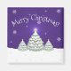 Add a festive touch to your kitchen this holiday season with a Purple Snowy Christmas Tree Magnet. Magnet design features a trio of snow covered decorated Christmas Trees against a purple background and falling snowflakes. Additional gift and holiday items available with this design as well.