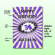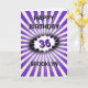 Purple splash custom name and age retro birthday card