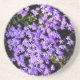 A close-up of tiny purple Oxalis flowers make this the perfect coaster for a spring get together.