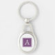 Add your initials or other text to customise this simple and modern Square Monogram Metal Keychain in purple and white. This trendy and chic keychain would make a perfect gift.